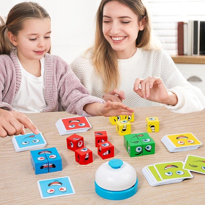 「會變臉的積木魔方」全家搶著玩 ✨ ✅ 智能升級:64張卡片 ✅ 親子時光機:4人同時對戰! ✅ 安全材質:圓角打磨木塊+環保水性漆 ✅ 專注力特訓:天然訓練邏輯思維