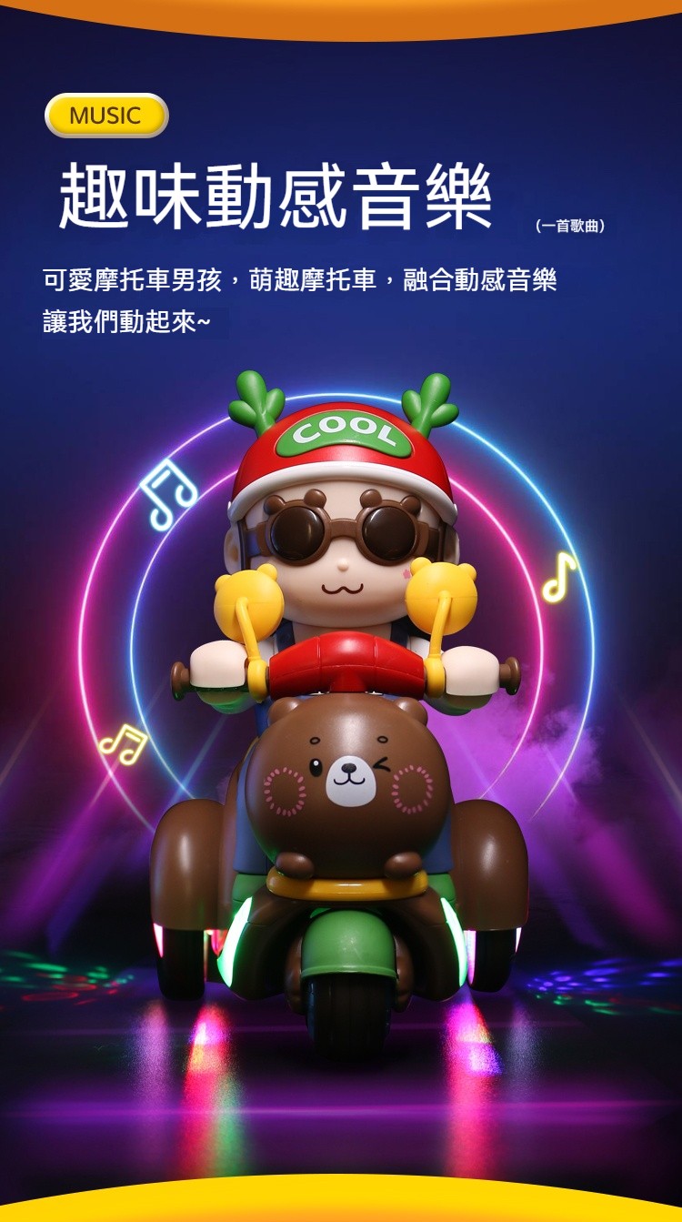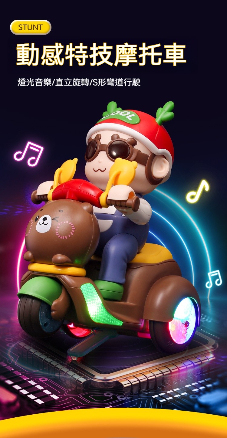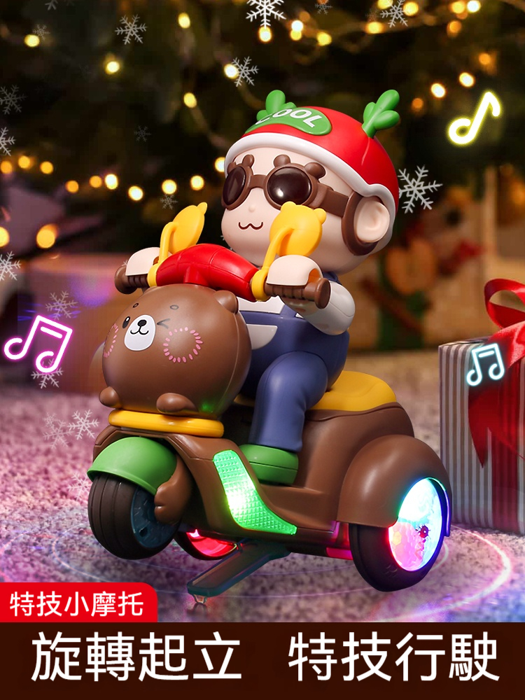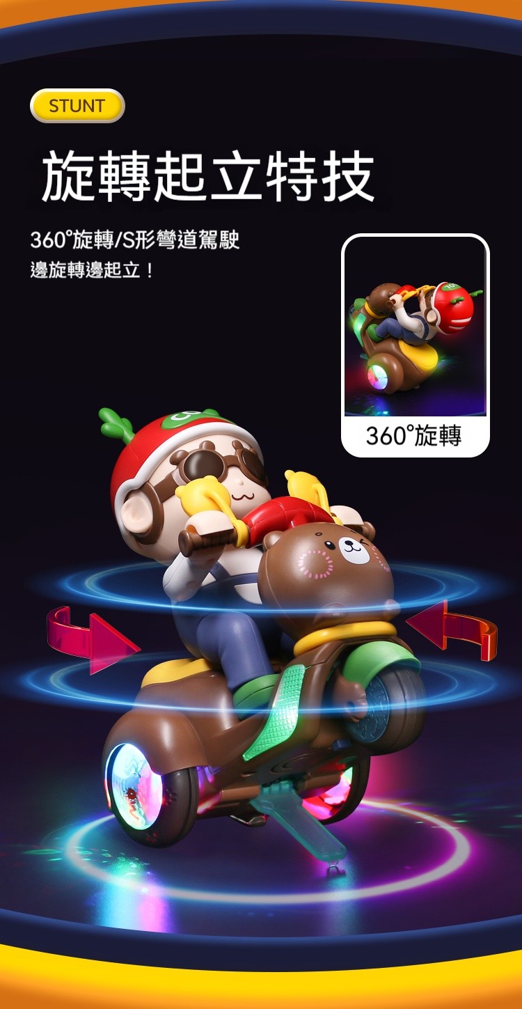 【買就送充電池】會耍特技的小熊摩托車!翹孤輪+自體翻滾+絢麗燈光✨✅ 翹孤輪特技✅ 360°風火輪✅ 閃電S彎