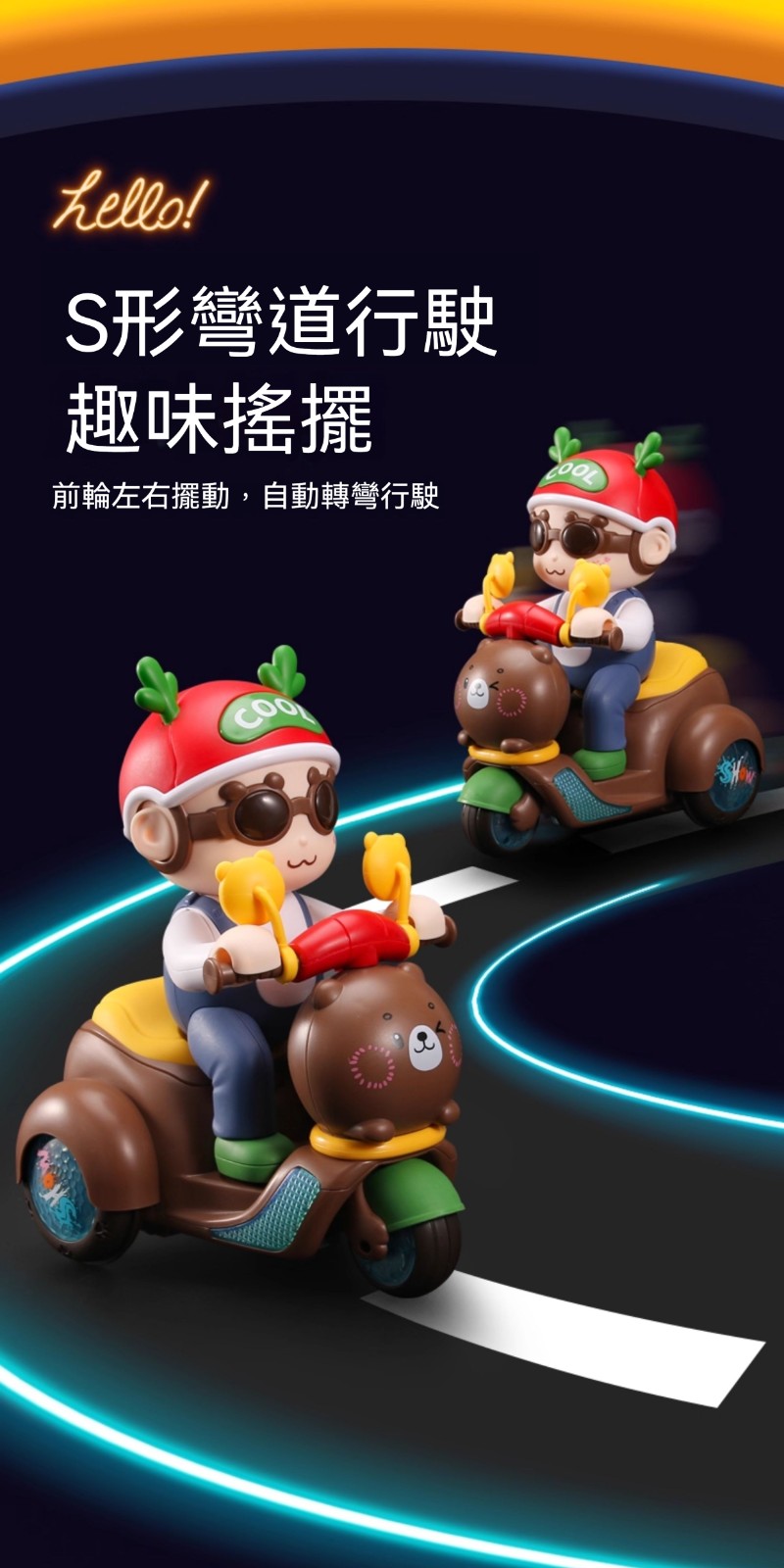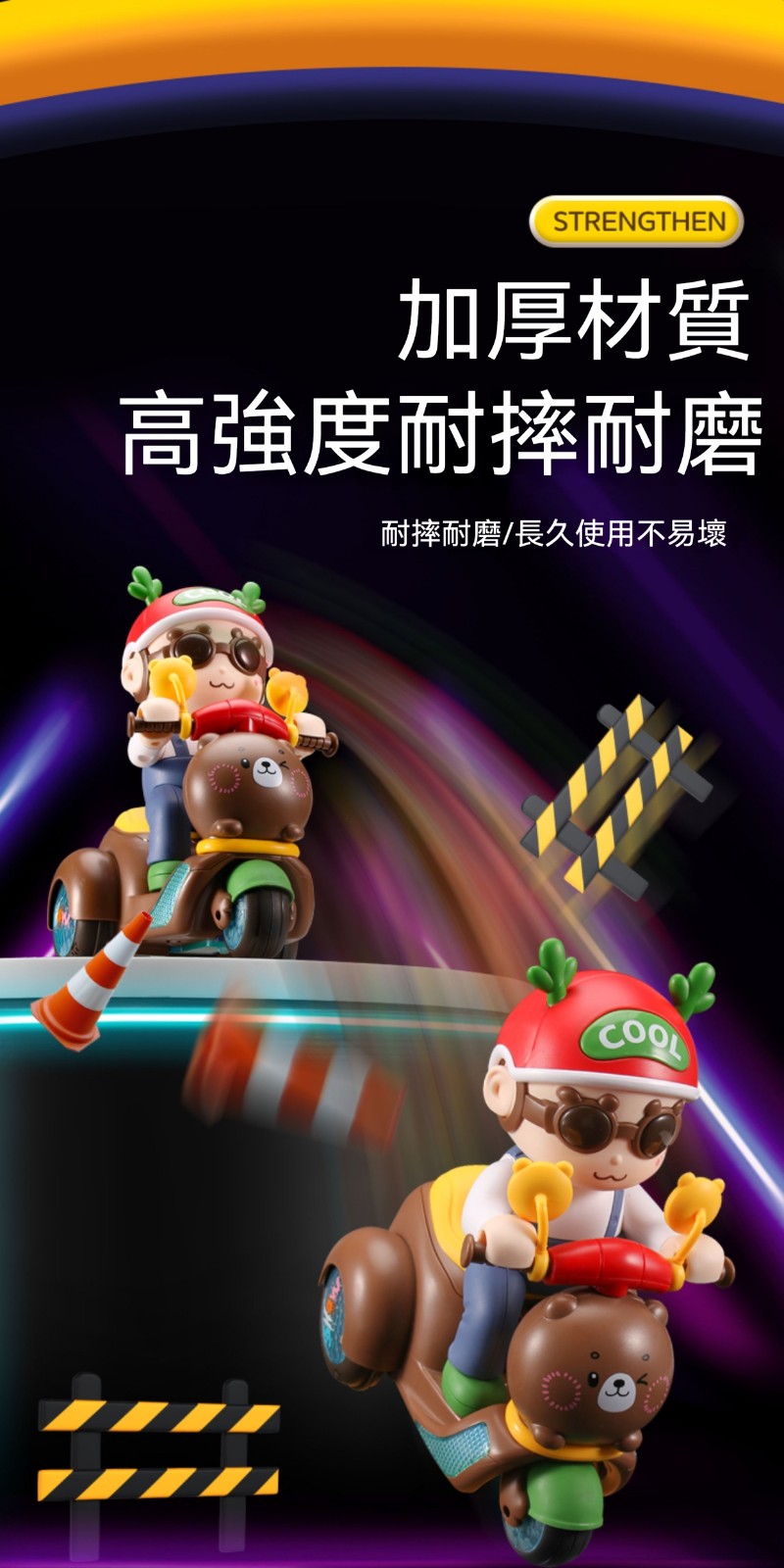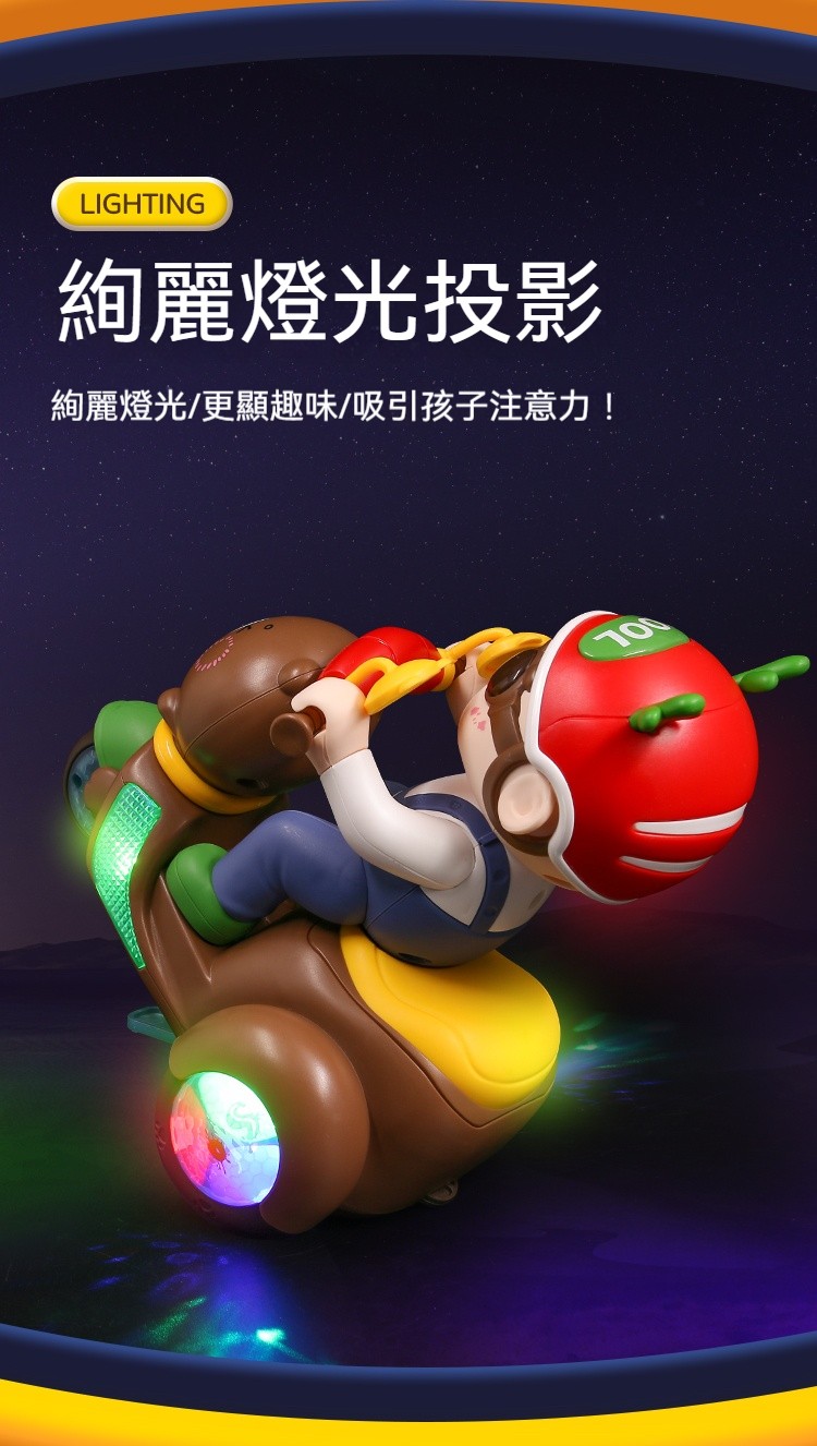 【買就送充電池】會耍特技的小熊摩托車!翹孤輪+自體翻滾+絢麗燈光✨✅ 翹孤輪特技✅ 360°風火輪✅ 閃電S彎