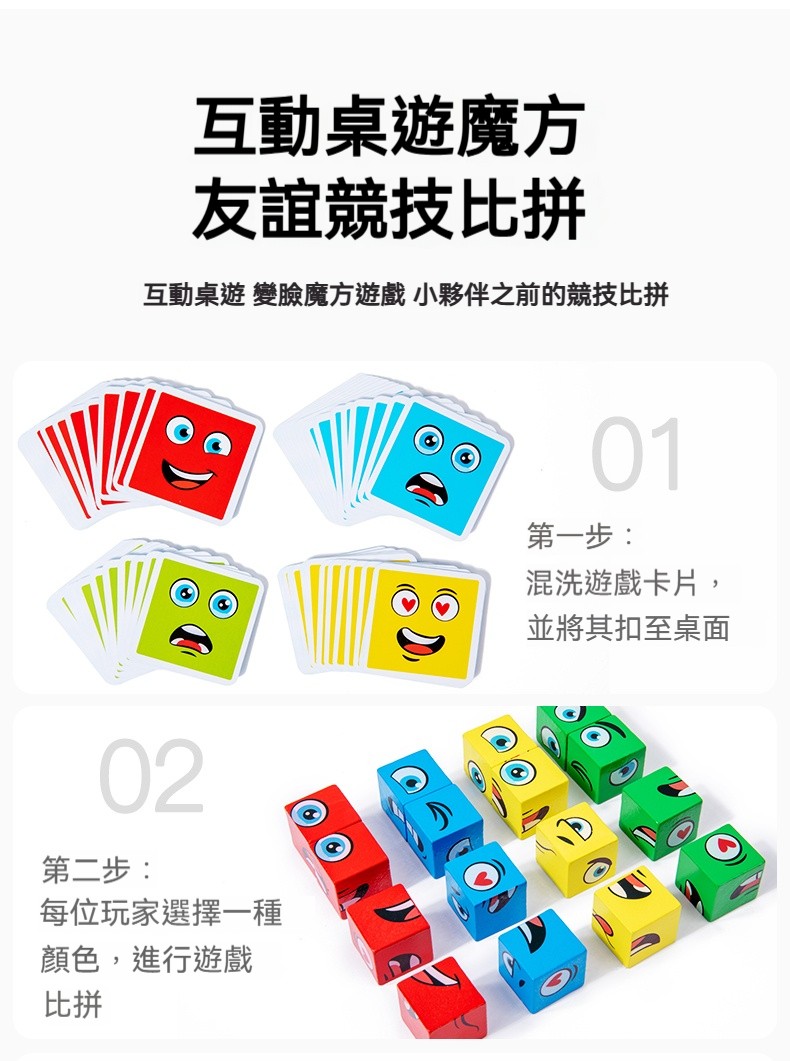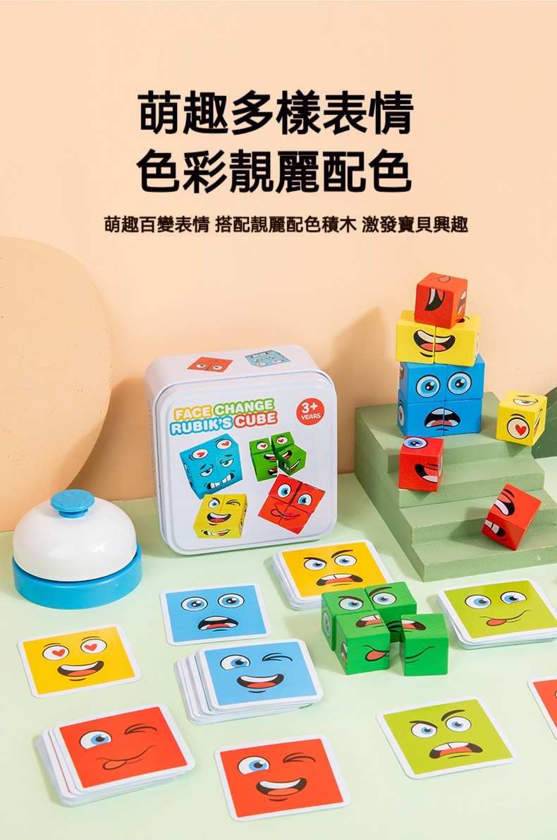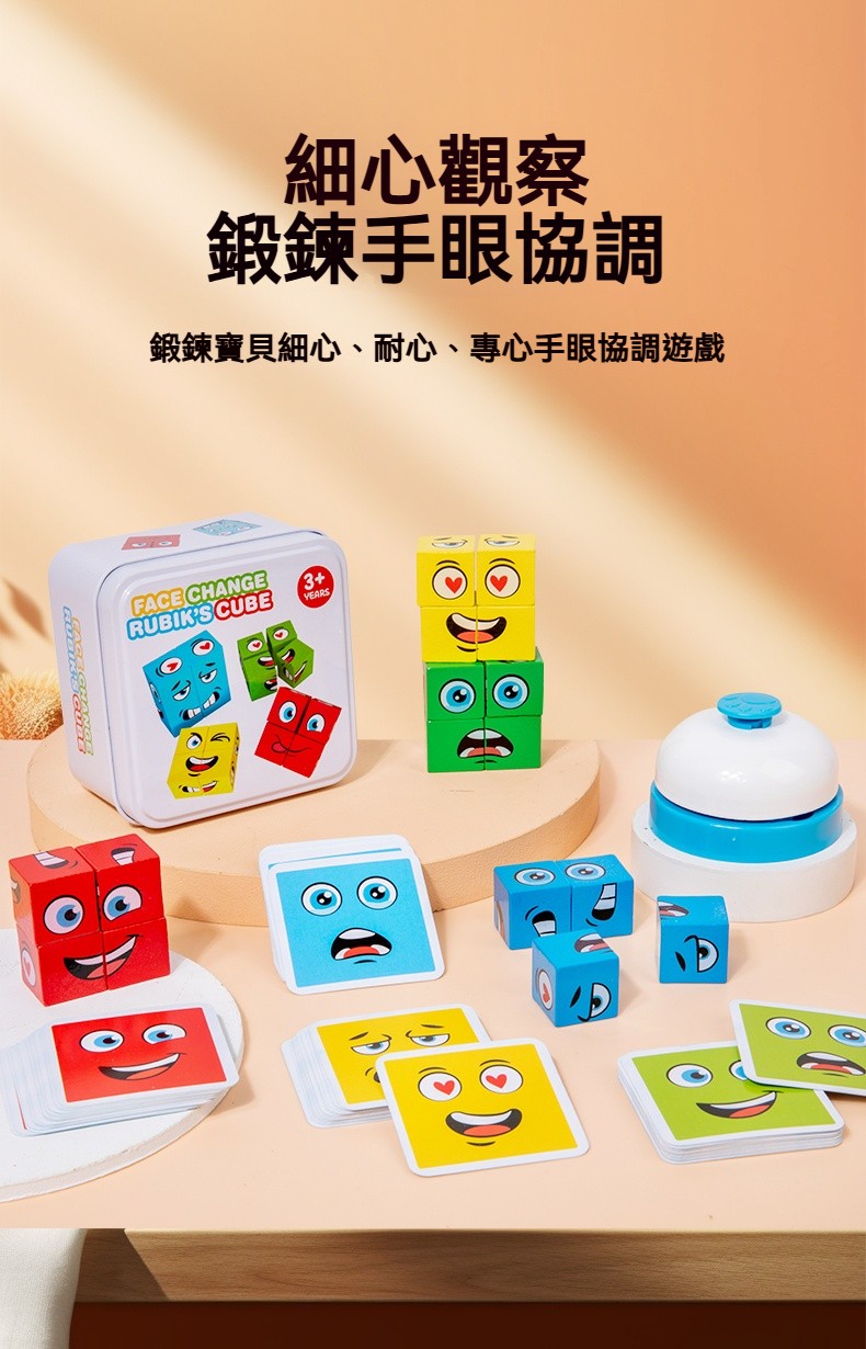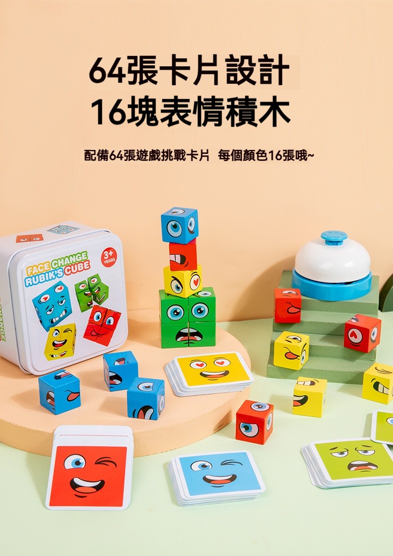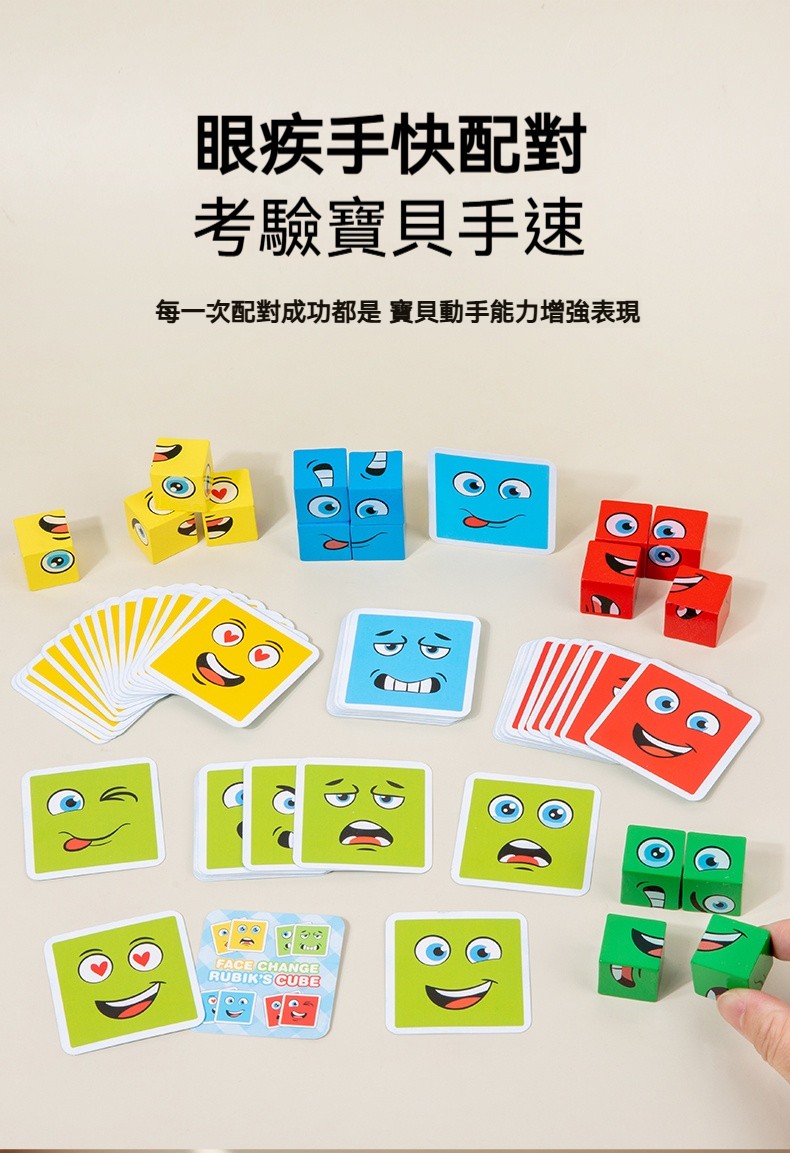 「會變臉的積木魔方」全家搶著玩 ✨ ✅ 智能升級:64張卡片 ✅ 親子時光機:4人同時對戰! ✅ 安全材質:圓角打磨木塊+環保水性漆 ✅ 專注力特訓:天然訓練邏輯思維