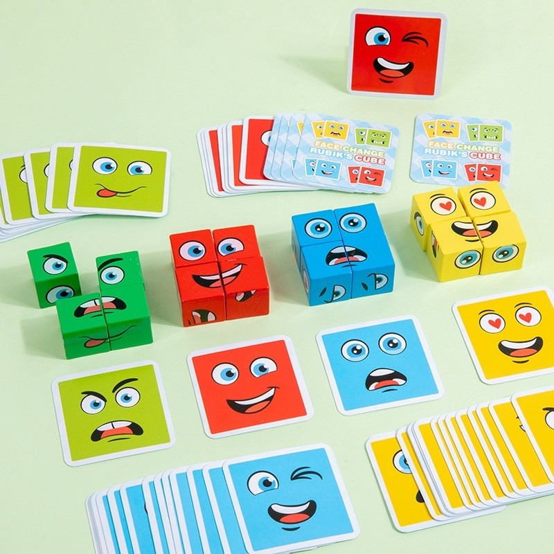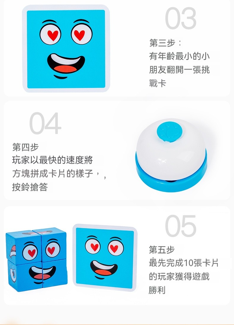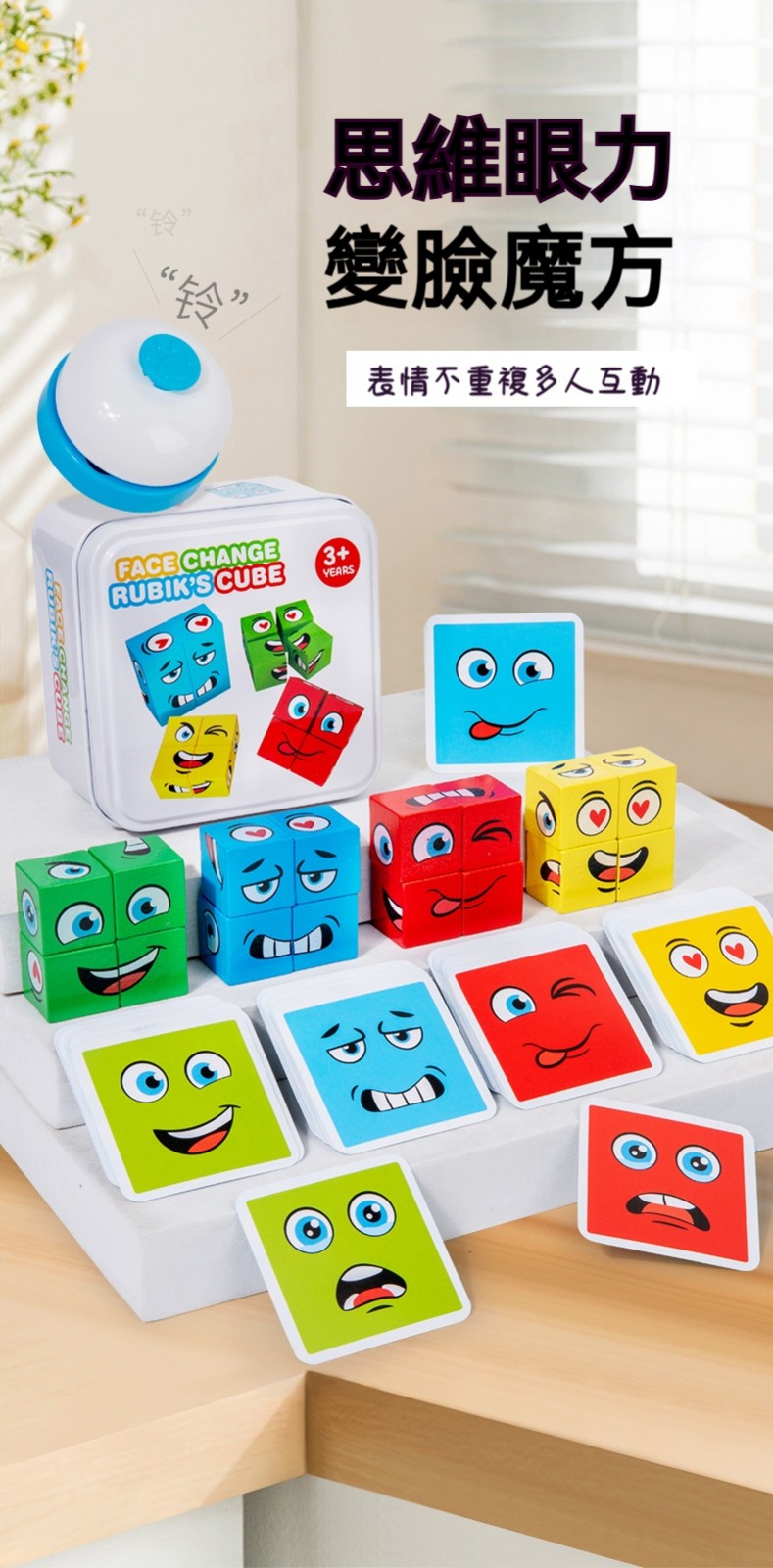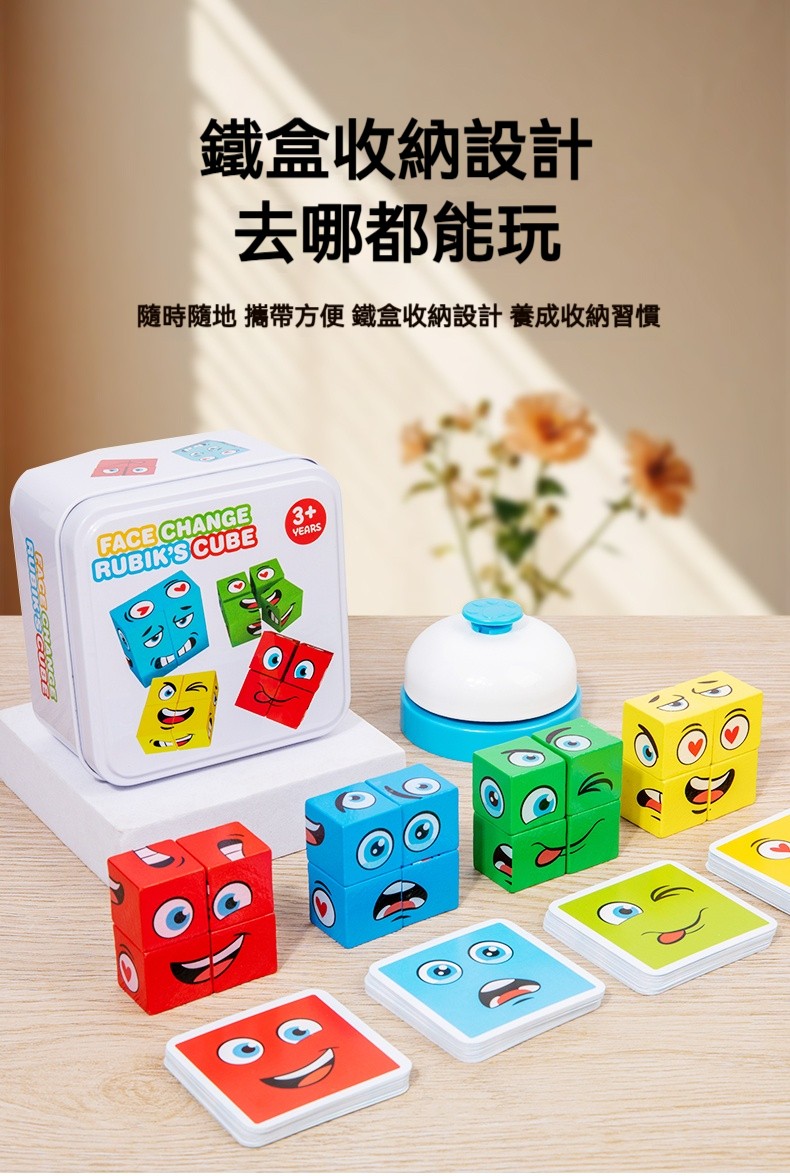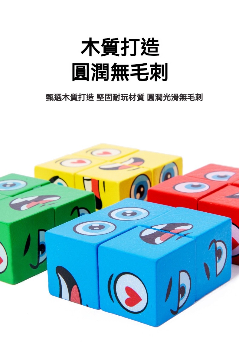 「會變臉的積木魔方」全家搶著玩 ✨ ✅ 智能升級:64張卡片 ✅ 親子時光機:4人同時對戰! ✅ 安全材質:圓角打磨木塊+環保水性漆 ✅ 專注力特訓:天然訓練邏輯思維