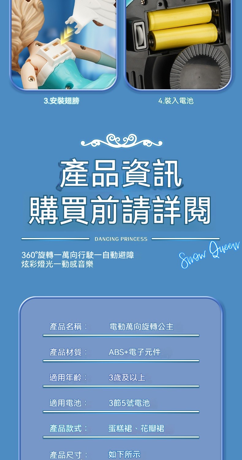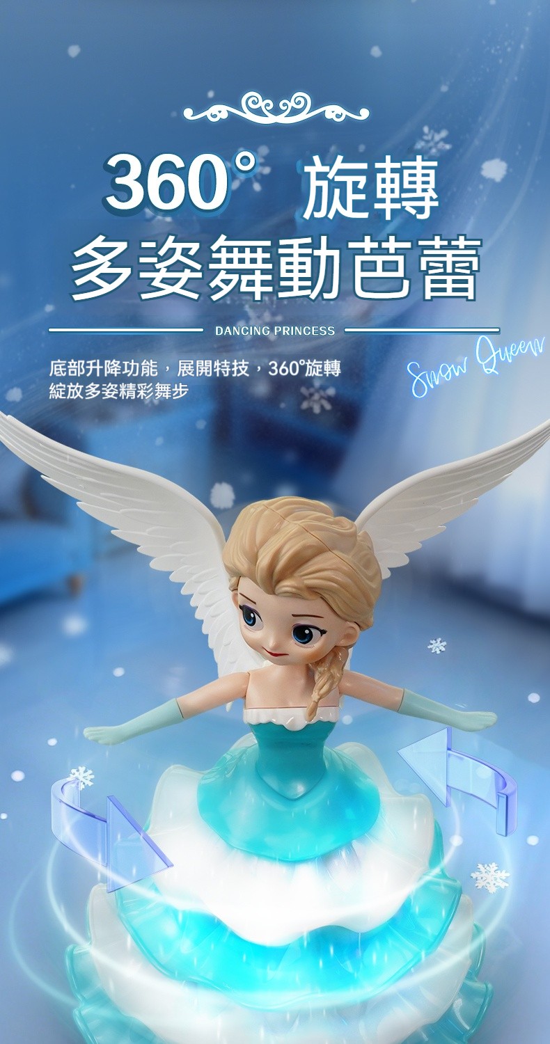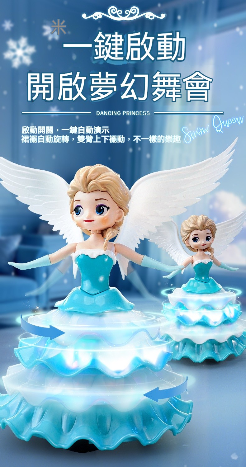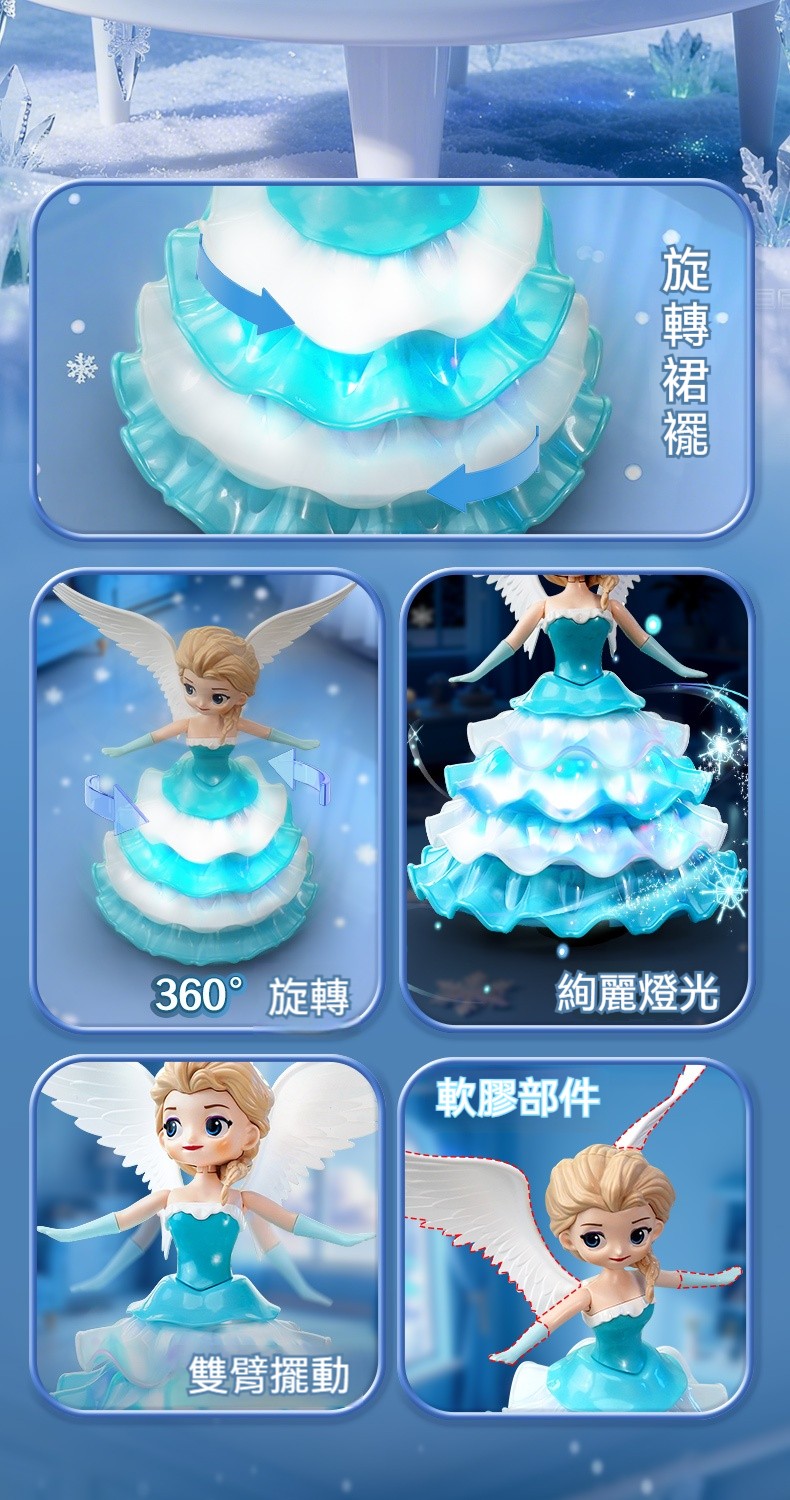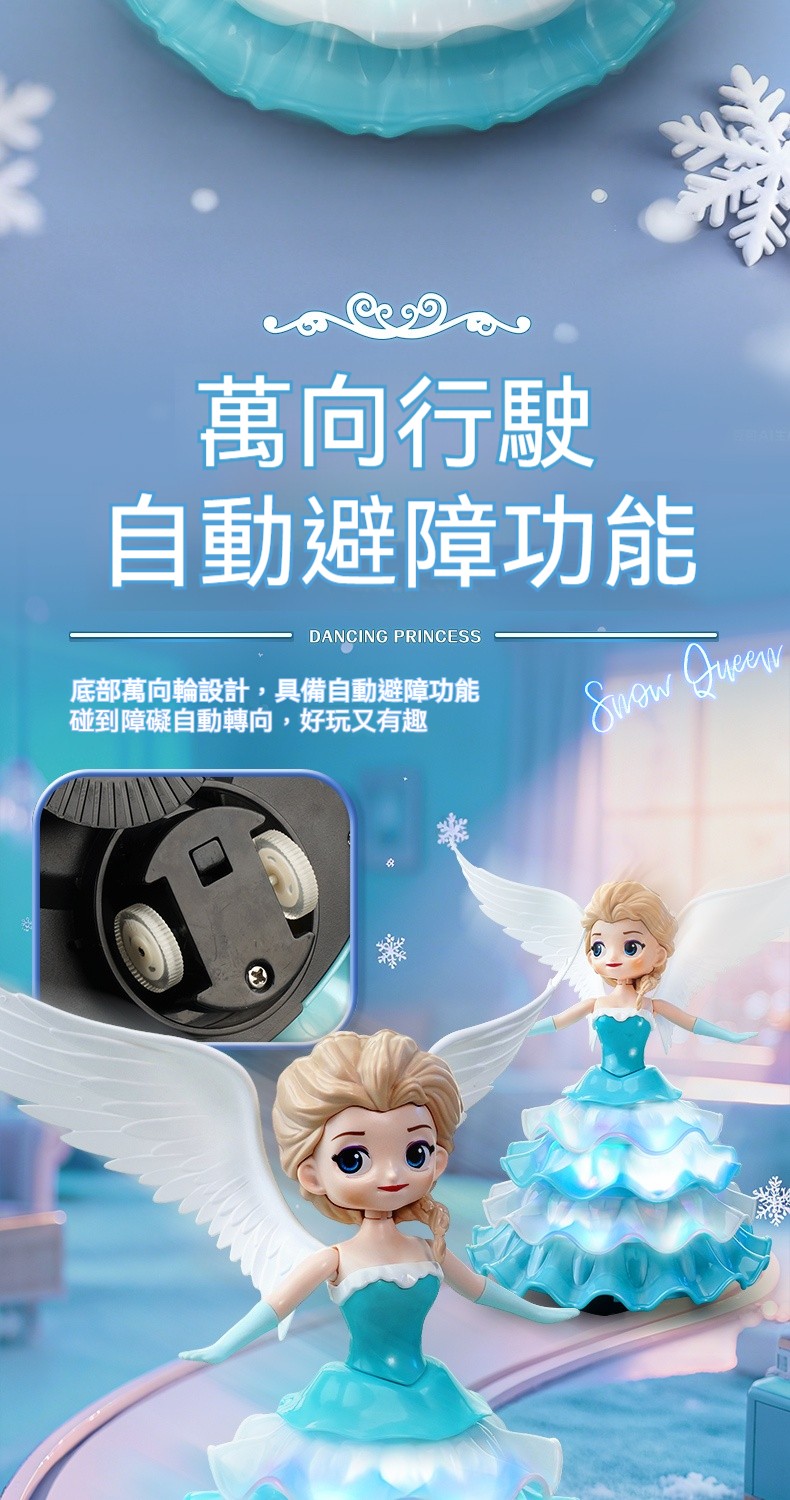 【魔法公主降臨】自帶冰雪燈光+自動避障旋轉✨送充電池3個✨✅ 冰雪芭蕾模式 ✅ 智能閃避魔法 ✅ 幻彩燈光特效 ✅ 柔軟安全材質 ✅ 持久魔法電力