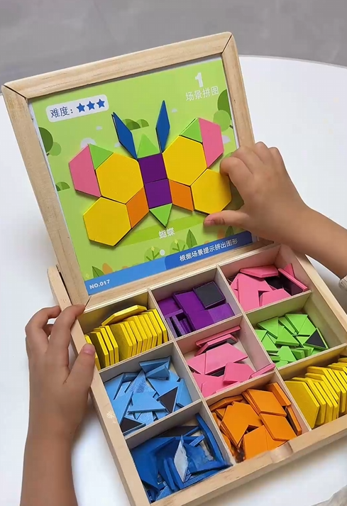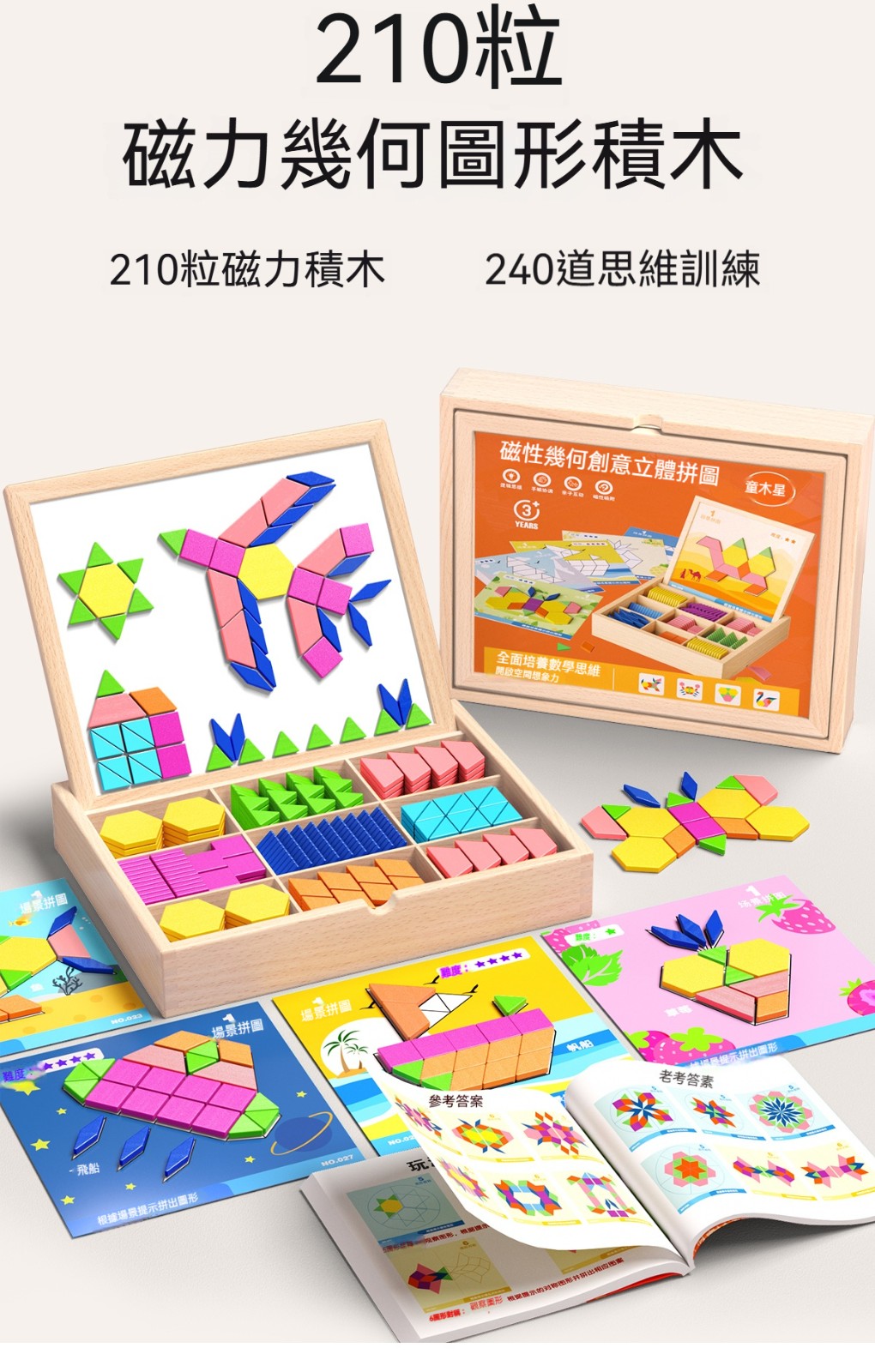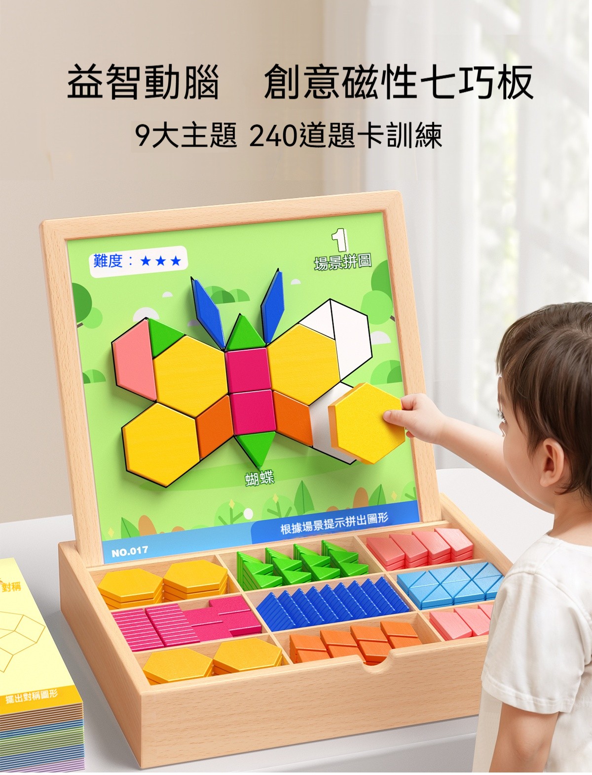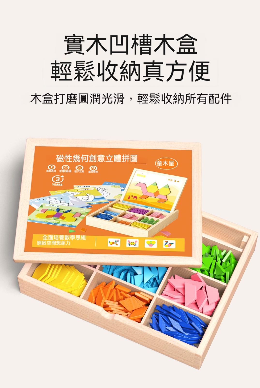 「磁力七巧板」木盒智慧寶藏|3歲玩到99歲的幾何魔法,吸附力滿分的腦力遊戲!✅ 磁性防滑設計 ✅ 原木安全材質 ✅ 雙面挑戰圖卡 ✅ 便攜鐵盒收納