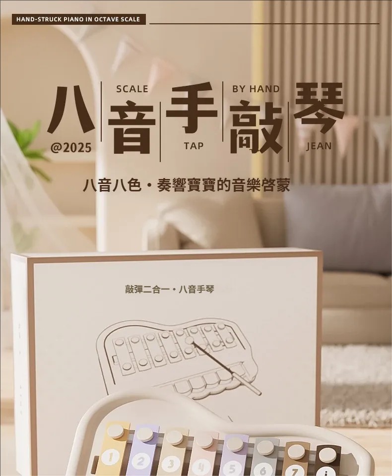 手敲八音琴|從敲擊到旋律✨✅ 純物理發音原理 ✅ 八音階精準調音 ✅ 圓角安全設計 ✅ 色彩認知輔助