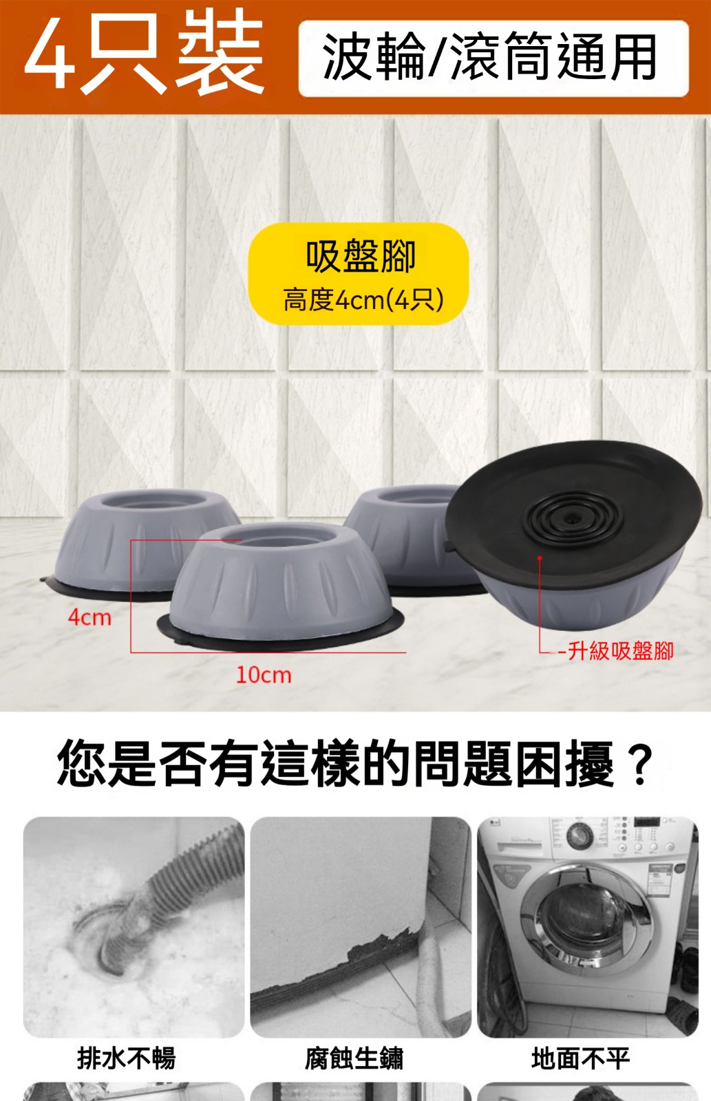✨洗衣機救星來了!「通用防震底座」墊高+防滑+靜音一次到位 ✨✅ 通用卡槽設計 ✅ 360°防滑技術 ✅ 墊高防潮必備 ✅ 減震靜音黑科技
