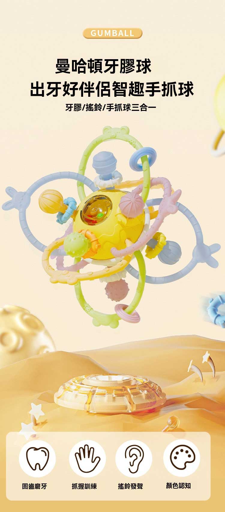 「曼哈頓魔法抓握球」寶寶的第一座遊樂場|啃咬×搖鈴×抓握✨✅ 360°無死角抓握弧 ✅ 食品級矽膠啃咬點 ✅ 柔響不刺耳搖鈴 ✅ 鮮明色彩對比設計